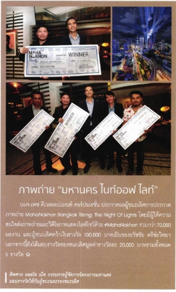 PACE Development Corporation Plc. announced the winners for their MahaNakhon: Night of Lights Photo Contest, part of an event marking construction completion of Thailand’s tallest building recently held on 29 August 2016. The light show attracted more than 70,000 images and videos. 100,000THB First prize for most outstanding entry given to Tawatchai Treechorvitaya. PACE also added 5 runner up prizes each of 20,000THB, to the next best 3 images and 2 videos