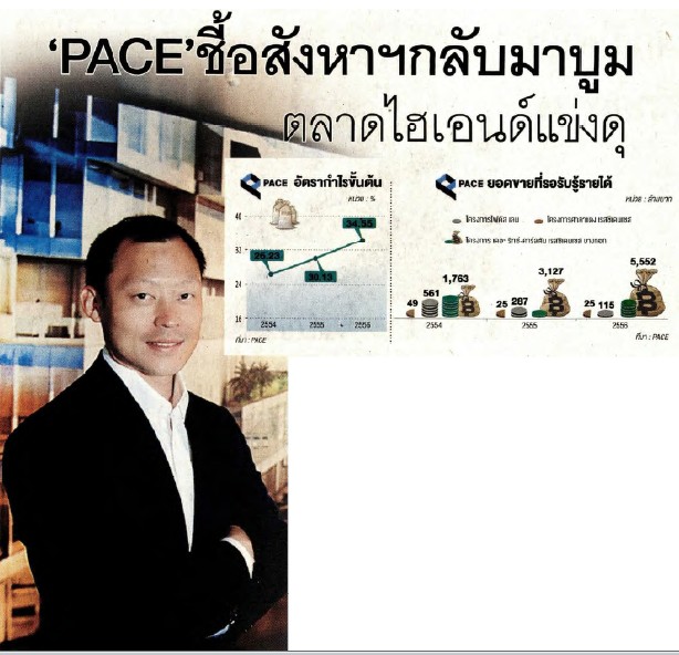 Mr. Sorapoj Techakraisri, CEO of PACE Development Corporation Plc. is confident that the high-end residential development market will continue to grow. PACE unique propositions include prime locations as well as superior quality and outstanding designs. Since launched, MahaNakhon has now been more than 60% sold.