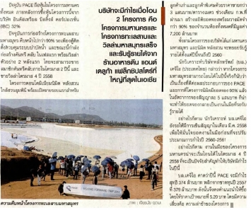 Mr. Sorapoj Techakraisri, Chief Executive Officer of PACE Development Corporation Plc disclosed that the company will be able to register profit after residences in MahaNakhon development and villas in MahaSamutrCountry Club development are transferred along with the recurring income from Dean & DeLuca..