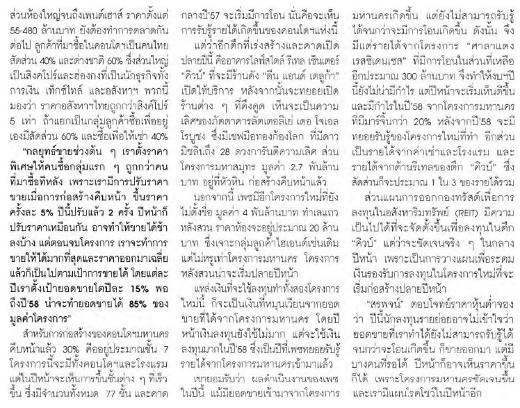 Despite its share price, PACE executives continue to boost sales of its ultra-luxury MahaNakhon’s Ritz-Carlton Residences through a series of roadshows. Sales of The Residences has already exceeded its yearly target by 10% and the roadshows have attracted strong interests among foreign investors.