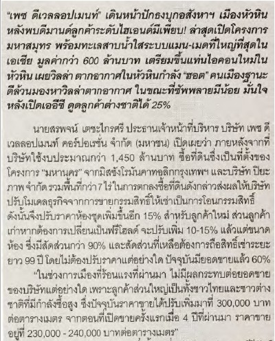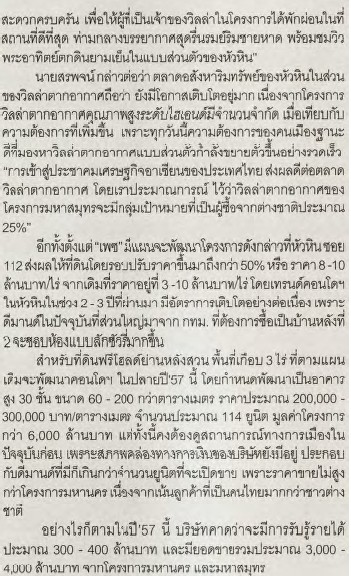 PACE Development Corporation Plc. launches “MahaSamutr” after discovering the high demand and low supply of hi-end residential in Hua Hin. “MahaSamutr” comprises largest man-made lagoon in Asia which is set to be the new landmark of Hua Hin. Villas in Hua Hin have proved popular among Bangkok buyers. PACE is confident that after AEC has been integrated, MahaSamutr will be able to pull 25% of foreign buyers.