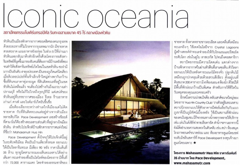 Hua Hin is the popular holiday getaway for people from Bangkok. PACE Development Corporation Plc. has created private lake which is located in the middle of Hua Hin called ‘Mahasamutr’. where there are only single 90 luxury villas provided. The price starts at 35 million baht. Crystal Lagoons technology is used to create artificial sea. Another interesting thing is the clubhouse called ‘Hua Hin Country Club’ where people in the community and membership can enjoy several activities.